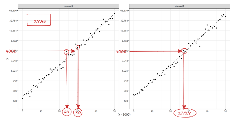 April 8, 2022 --- <style type="text/css"> .wrap { width: 1050px; height: 550px; padding: 0; overflow: hidden; position: absolute; } .wrap2 { width: 1200px; height: 650px; padding: 0; overflow: hidden; } .scale-frame { width: 1100px; height: 760px; border: 0; -ms-transform: scale(0.75); -moz-transform: scale(0.75); -o-transform: scale(0.75); -webkit-transform: scale(0.75); transform: scale(0.75); -ms-transform-origin: 0 0; -moz-transform-origin: 0 0; -o-transform-origin: 0 0; -webkit-transform-origin: 0 0; transform-origin: 0 0; } </style> <!-- In 2020, there was suddenly worldwide interest in graphics on a level we don't normally see - people were checking news sites daily looking for graphs, maps, and any information about how the COVID pandemic was progressing over time. Along with this, there were some very novel forms of graphics, some of which worked and many of which did not. As the pandemic continued, however, most news organizations seemed to settle on certain categories of graphics for displaying COVID case counts, hospitalizations, and deaths. Watching the pandemic and the graphics explosion that resulted, I found relatively little research into how people perceive exponential growth, and even less research into the effectiveness of log scales for conveying information. I'll talk about a series of experiments that are currently under development to explore these two topics, as well as the evolution of graphics over the course of the pandemic. --> ## Outline - Past Pandemic Graphs - Early COVID Graphs - Settled Graphical Forms - Perception and Log Scales --- ## Past Pandemics in Graphical Form <!-- Trigger the Modal --> <img id='img1918Funston' src='1918-Funston.png' alt='Reproduction from the Journal of the American Medical Association, Jan 11, 1919. Image from https://flickr.com/photos/medicalmuseum/40347344610/' style='object-fit:contain;max-width:49%;max-height:500px;margin-left:auto;margin-right:auto;width:45%'> <!-- Trigger the Modal --> <img id='img1840_cholera_mortality_temperature_london' src='1840_cholera_mortality_temperature_london.png' alt='Excess Mortality and Temperature, 1840s London.' style='object-fit:contain;max-width:49%;max-height:500px;margin-left:auto;margin-right:auto;width:45%'> <!-- The Modal --> <div id='modal1918Funston' class='modal'> <!-- Modal Content (The Image) --> <img class='modal-content' id='imgmodal1918Funston'> <!-- Modal Caption (Image Text) --> <div id='caption1918Funston' class='modal-caption small'></div> </div> <!-- The Modal --> <div id='modal1840_cholera_mortality_temperature_london' class='modal'> <!-- Modal Content (The Image) --> <img class='modal-content' id='imgmodal1840_cholera_mortality_temperature_london'> <!-- Modal Caption (Image Text) --> <div id='caption1840_cholera_mortality_temperature_london' class='modal-caption small'></div> </div> <!-- Trigger the Modal --> <img id='imgInfluenza1919majorcities' src='Influenza-1919-majorcities.png' alt='Influenza in Major Cities, 1918-1919' style='object-fit:contain;max-width:49%;max-height:500px;margin-left:auto;margin-right:auto;width:45%'> <!-- Trigger the Modal --> <img id='imgCholera_plague_london' src='Cholera_plague_london.png' alt='Cholera & Plague in London (Created 1849)' style='object-fit:contain;max-width:49%;max-height:500px;margin-left:auto;margin-right:auto;width:45%'> <!-- The Modal --> <div id='modalInfluenza1919majorcities' class='modal'> <!-- Modal Content (The Image) --> <img class='modal-content' id='imgmodalInfluenza1919majorcities'> <!-- Modal Caption (Image Text) --> <div id='captionInfluenza1919majorcities' class='modal-caption small'></div> </div> <!-- The Modal --> <div id='modalCholera_plague_london' class='modal'> <!-- Modal Content (The Image) --> <img class='modal-content' id='imgmodalCholera_plague_london'> <!-- Modal Caption (Image Text) --> <div id='captionCholera_plague_london' class='modal-caption small'></div> </div> ??? One of the biggest challenges that we faced early on is that the scales we started out with weren't sufficient for the magnitude of the problem we were facing later. It turns out that this isn't really special - people have dealt with it before... Note that the one graph that doesn't seem to go off the charts completely is one that was created well after the peak and uses standard cartesian coordinates. If it were radial (as the plague/cholera graphs are) then it would look quite a bit different. --- ## An Explosion of Graphics - COVID <!-- Trigger the Modal --> <img id='imgabomination' src='abomination.png' alt='May 6 2020: Three graphs that show a global slowdown in COVID-19 deaths, https://theconversation.com/three-graphs-that-show-a-global-slowdown-in-covid-19-deaths-135756' style='object-fit:contain;max-width:49%;max-height:500px;margin-left:auto;margin-right:auto;width:45%'> <!-- Trigger the Modal --> <img id='imgbubblecharts' src='bubble-charts.png' alt='Active Cases vs. Total Deaths (Reddit, May 9 2020: https://i.redd.it/8lasbu2rspx41.png)' style='object-fit:contain;max-width:49%;max-height:500px;margin-left:auto;margin-right:auto;width:45%'> <!-- The Modal --> <div id='modalabomination' class='modal'> <!-- Modal Content (The Image) --> <img class='modal-content' id='imgmodalabomination'> <!-- Modal Caption (Image Text) --> <div id='captionabomination' class='modal-caption small'></div> </div> <!-- The Modal --> <div id='modalbubblecharts' class='modal'> <!-- Modal Content (The Image) --> <img class='modal-content' id='imgmodalbubblecharts'> <!-- Modal Caption (Image Text) --> <div id='captionbubblecharts' class='modal-caption small'></div> </div> <!-- Trigger the Modal --> <img id='imgtestsvscases' src='tests-vs-cases.png' alt='Tests vs. Cases, Our World in Data (May 19 2020)' style='object-fit:contain;max-width:49%;max-height:500px;margin-left:auto;margin-right:auto;width:45%'> <!-- Trigger the Modal --> <img id='imgtriangles' src='triangles.png' alt='Rate of Death Change, July 10, 2020' style='object-fit:contain;max-wid