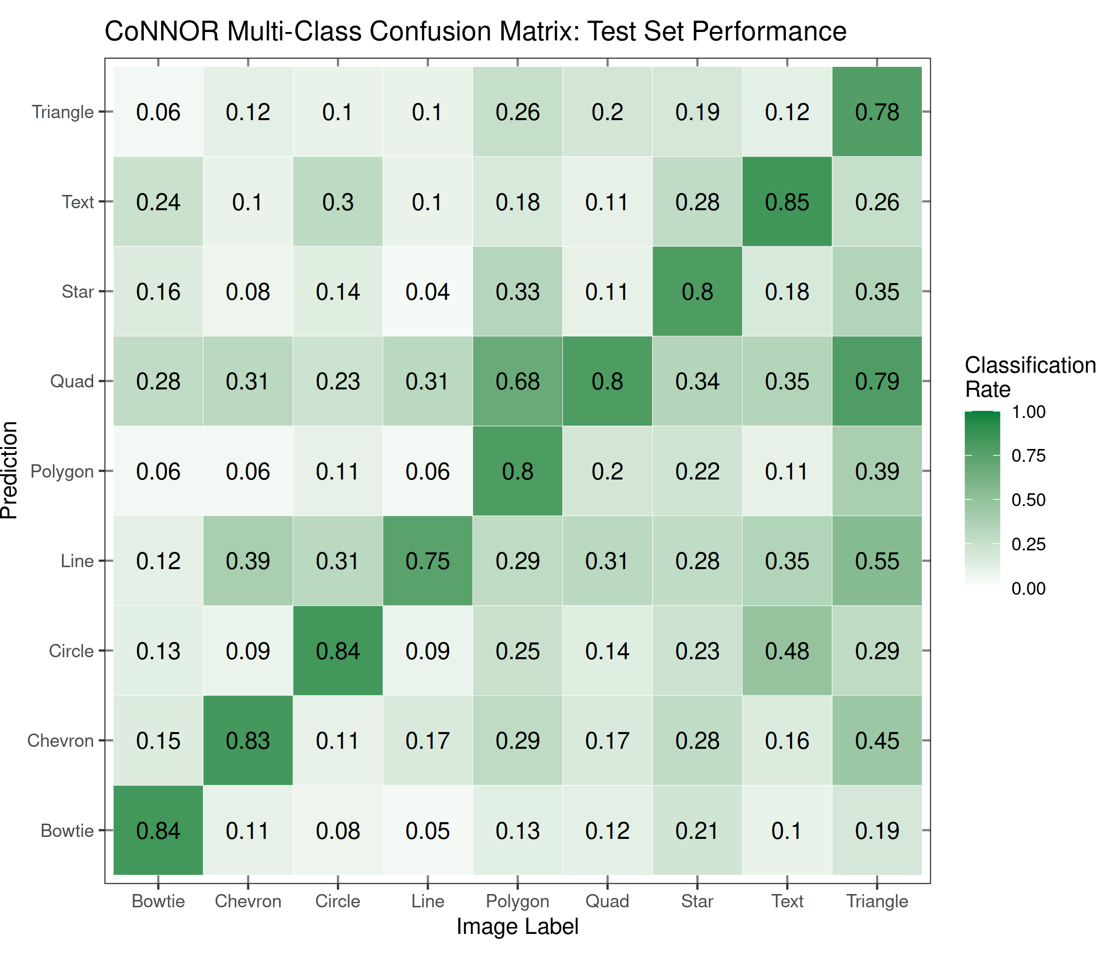 Not terrible but a lot of class confusion between e.g. Circles & Text, Quad & Polygon, Quad & Triangle