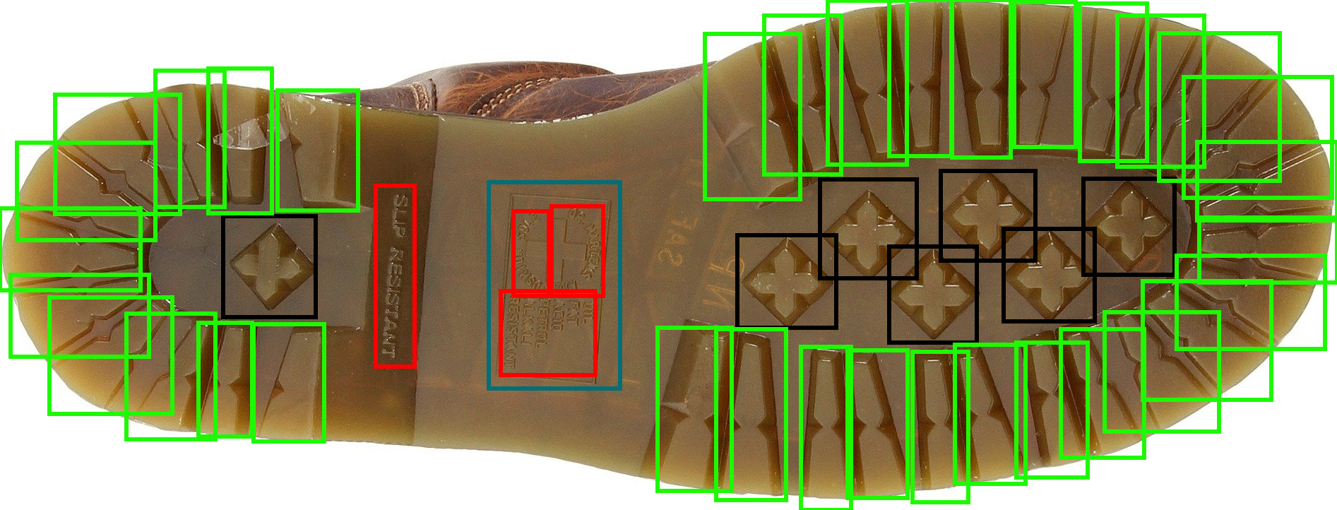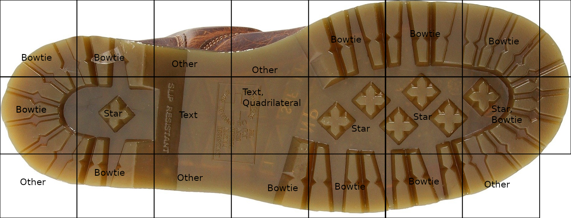 Networks weren’t trained on the artificial patterns or layouts in shoe soles