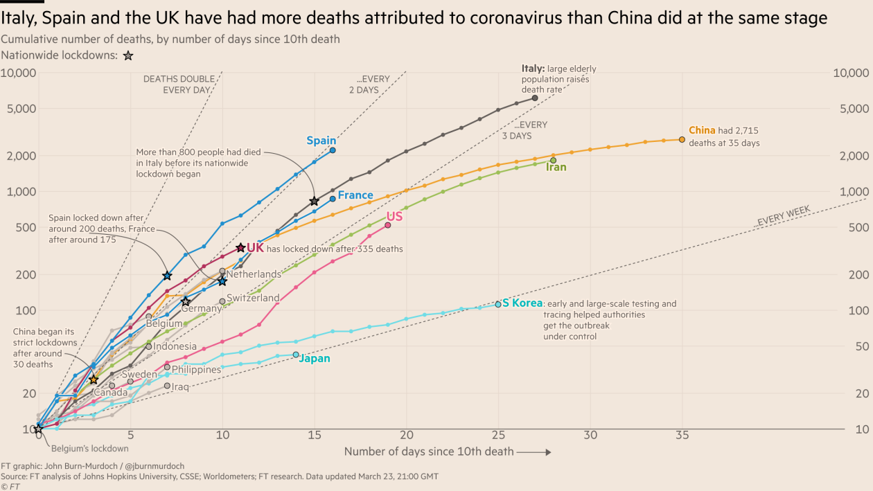 Rate of Death Change, March 28, 2020. Romain Vuillemot (@romsson) Image source