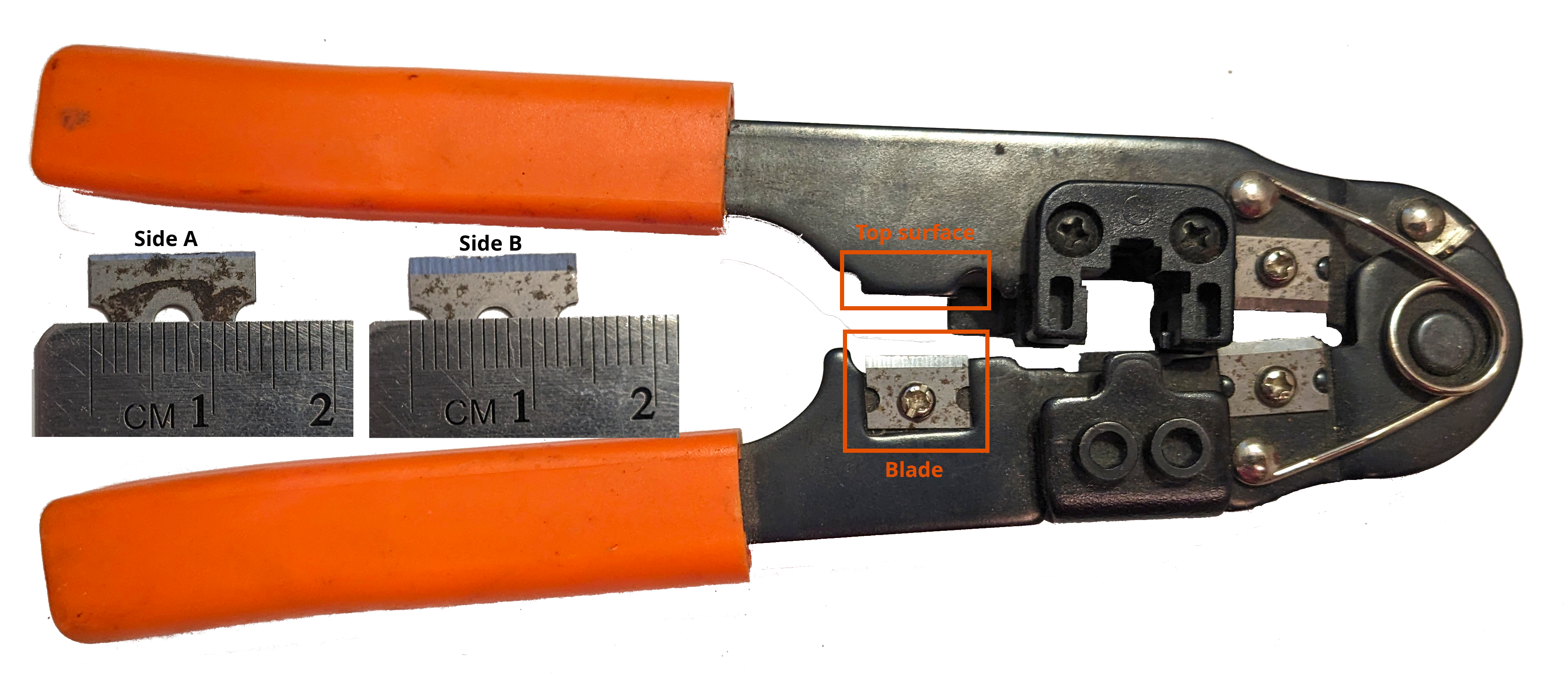 My house has \(\approx\) 982 cm of (easily accessible) blade surface which might be used to cut wires. Not shown: the craft room, the kitchen, and the garden shed. My dad’s shop has \(\approx\) 2243 cm of blade surface. No one in either house is a professional craftsperson.