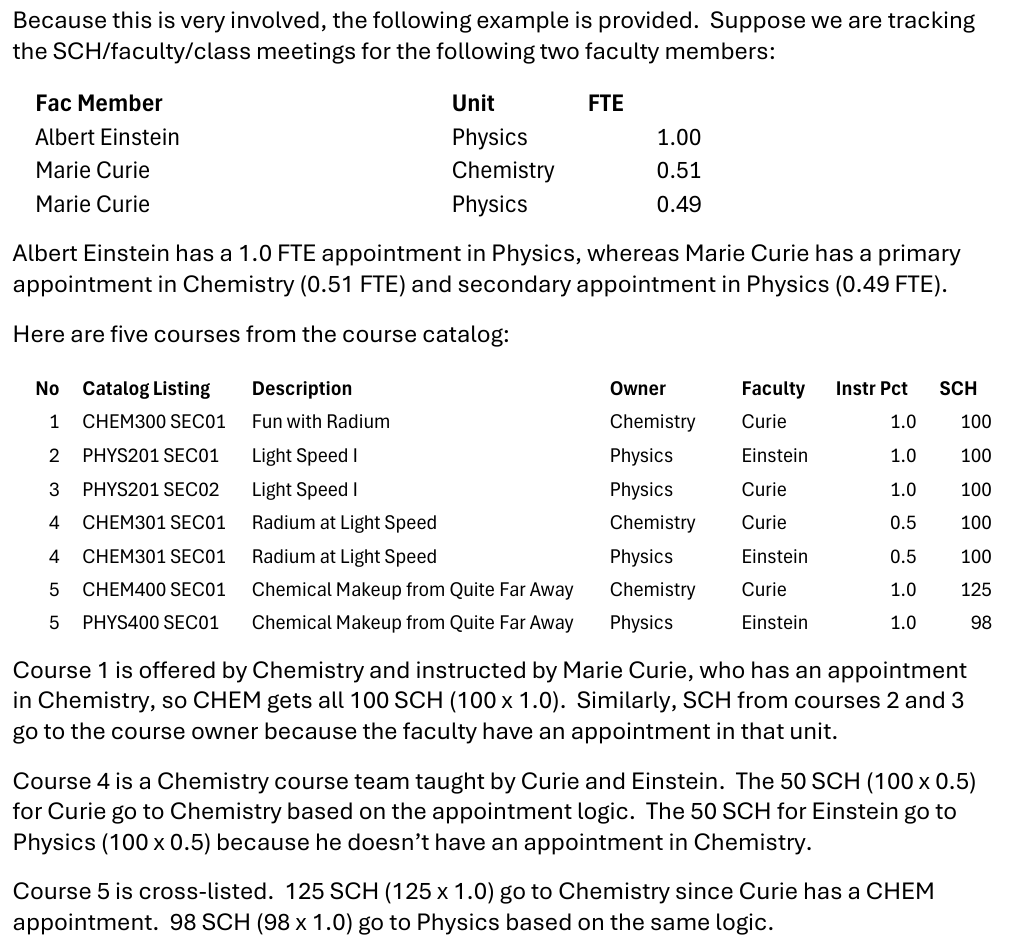 - If a course prefix maps to a “unit” that is instructed by a faculty member WITHOUT an appointment in that “unit” then the SCH will be assigned to the “unit” where the faculty member has their largest percentage of appointment (primary appointment home).