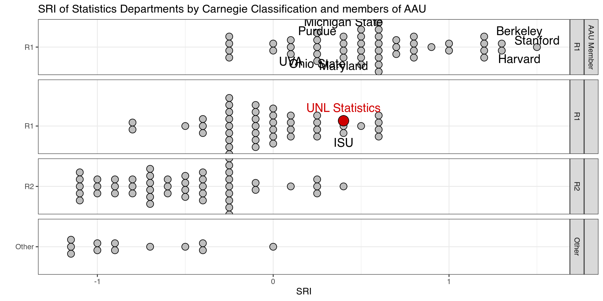 SRI Percentiles (removes dependence on \(\sigma_D\))Suggestion: separate AAU criteria from research average, use SRI Percentiles as measure for Departments research